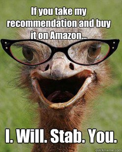 Okay, I’m getting emotional, I know, and don’t worry, I’m not really going to sic my angry ostrich on you, but I will draw a direct connection between the statistics of this new survey and what the numbers mean for someone who earns her living as an independent bookseller. There is indeed a reason why I get so emotional.