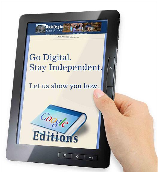 Beginning December 30th, BookPeople is excited to offer you a one-on-one opportunity to learn the ins and outs of reading digitally and independently. Book an appointment with one of our specially trained e-book concierges and we will show you how to find, purchase, and download your favorite e-books from bookpeople.com. We will also show you how to read those books on your new device.