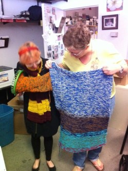Now I don’t want to prejudice our judges unfairly, but so far my project has taken a dozen knitters and at least sixteen balls of yarn….sounds pretty ambitious to me!
