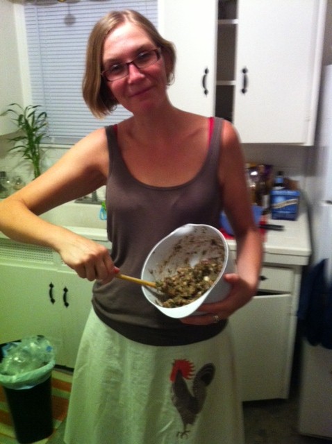 Meanwhile, the patties were coming together nicely. Most of the work was in the chopping. Which is why I look so happy. This was so easy!