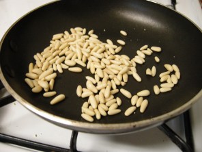 Toss with toasted pine nuts and Parmesan.