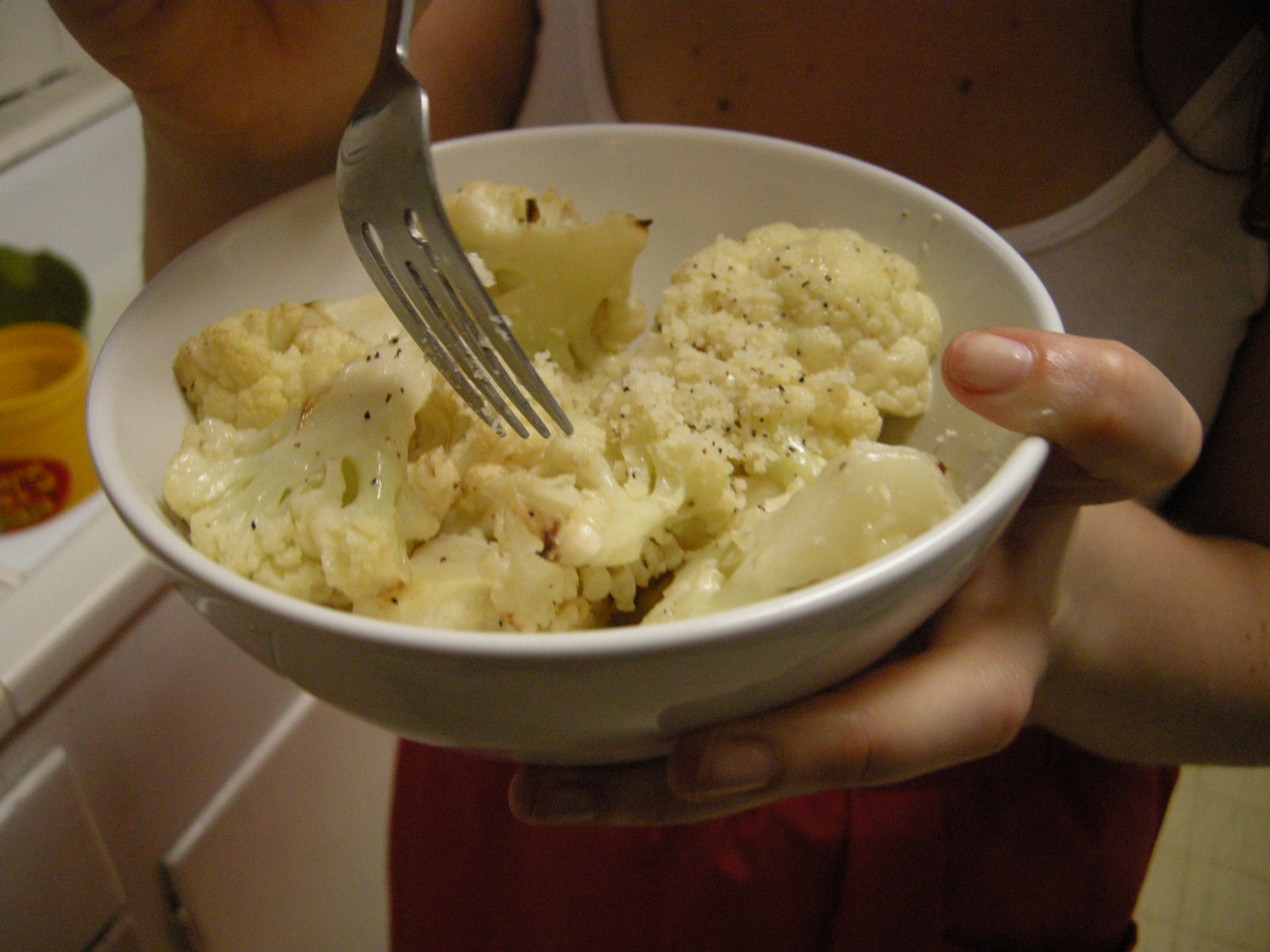 Italian, My Way, Johnathan Waxman’s cookbook, is beautiful. I was going to make a leg of lamb braised for 7 hours, with a blood orange salad, and a lemon tort for dessert – but time got tight. What I did make was Cauliflower roasted with pine nuts and cream. It was AMAZING (and super easy).