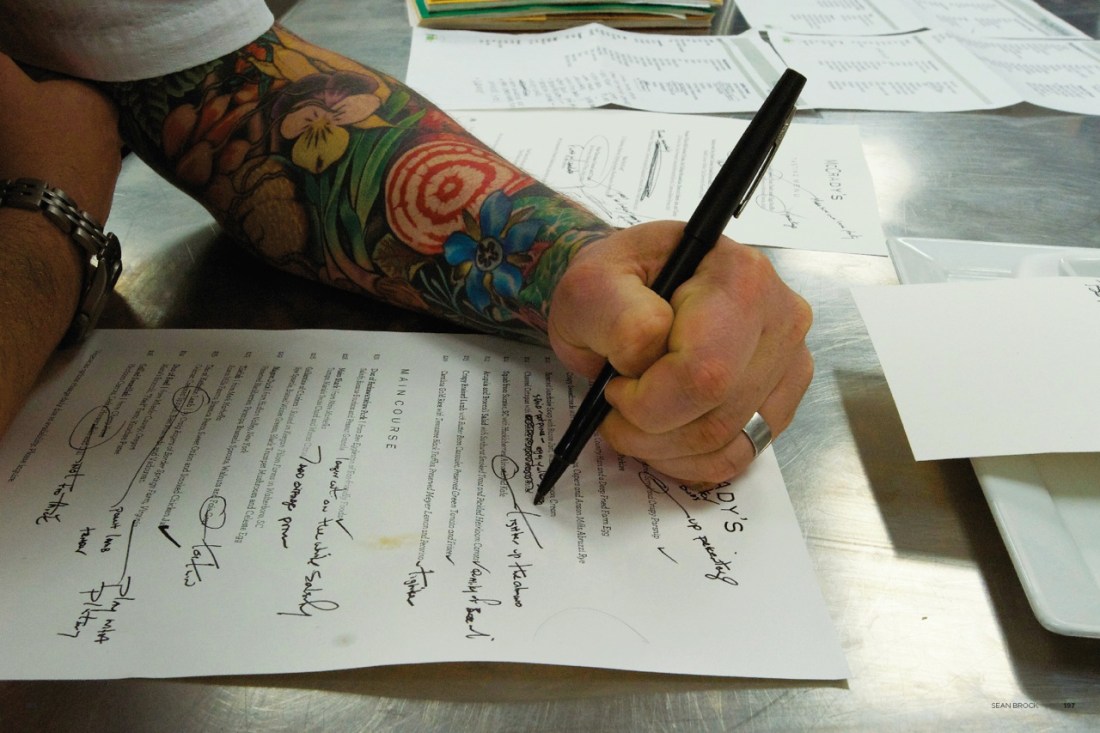 JEFF SCOTT: The idea with Notes was literally to reinvent the genre of what a “cookbook” really is, beyond the standard formula of some cool photos and lists of ingredients. I wanted to totally reinvigorate what would be creatively possible within a book on cooking and how one could gain a far deeper understanding of heirloom food, how it’s nurtured by passionate farmers and the overall process of great creative cooking. You then have to ask yourself the essential questions: What do the world’s best chefs know that we perhaps do not? How do they approach ideas, flavor, dish-development, utilizing sense memory to allow a dish to really go into our subconscious? What is their daily process of creativity, what does it “look” and “feel” like? How do great chefs nurture their personal and professional relationships? Do these relationships inform their cooking? Notes sets about to find the answers to these questions, and perhaps provokes us to ask more questions. And the only way that I know to answer some of these questions is to spend a lot of time with these obsessive creative souls, to spend more time than makes sense so that you then become invisible, really, and to carefully and accurately document their daily lives.