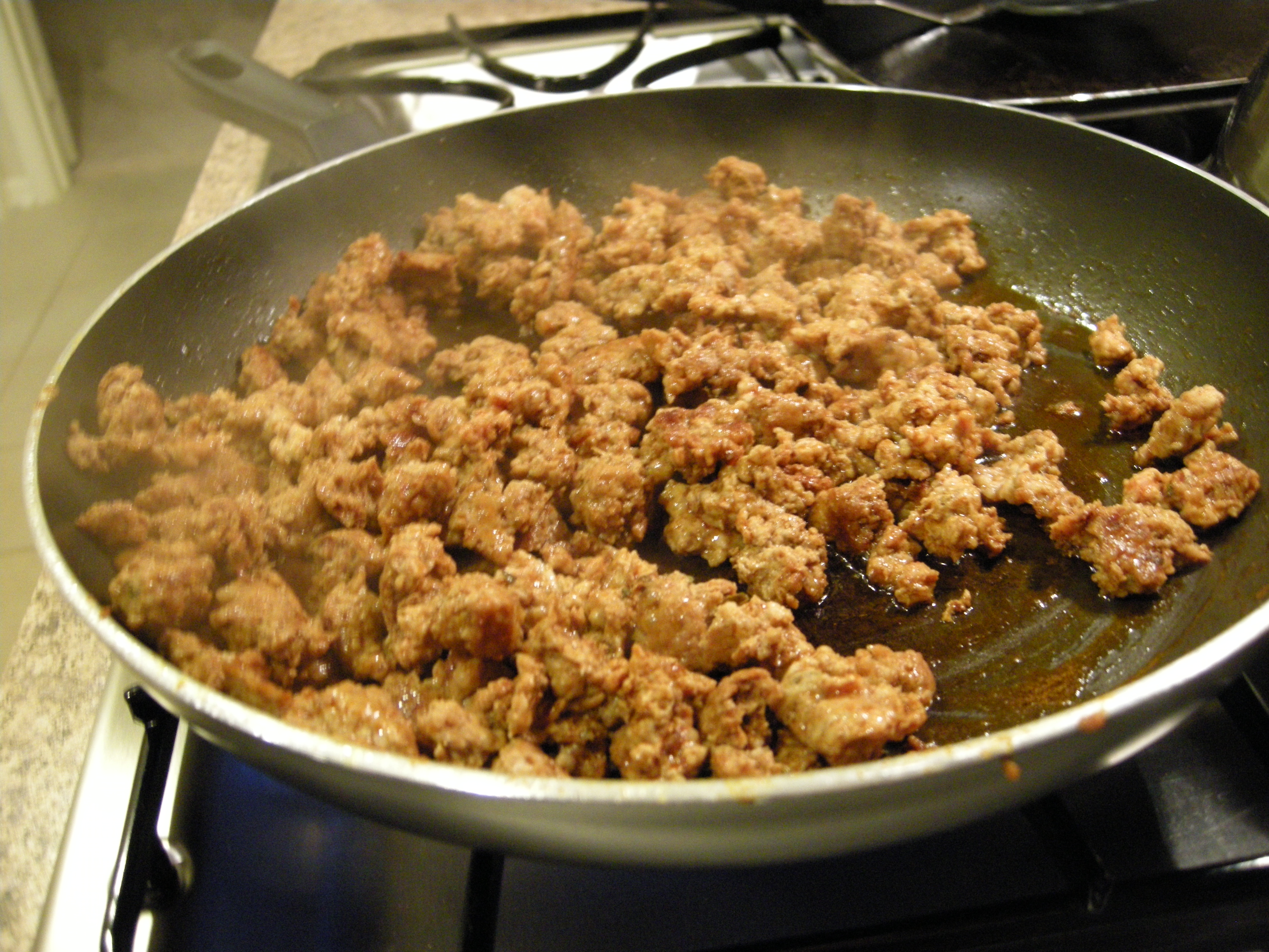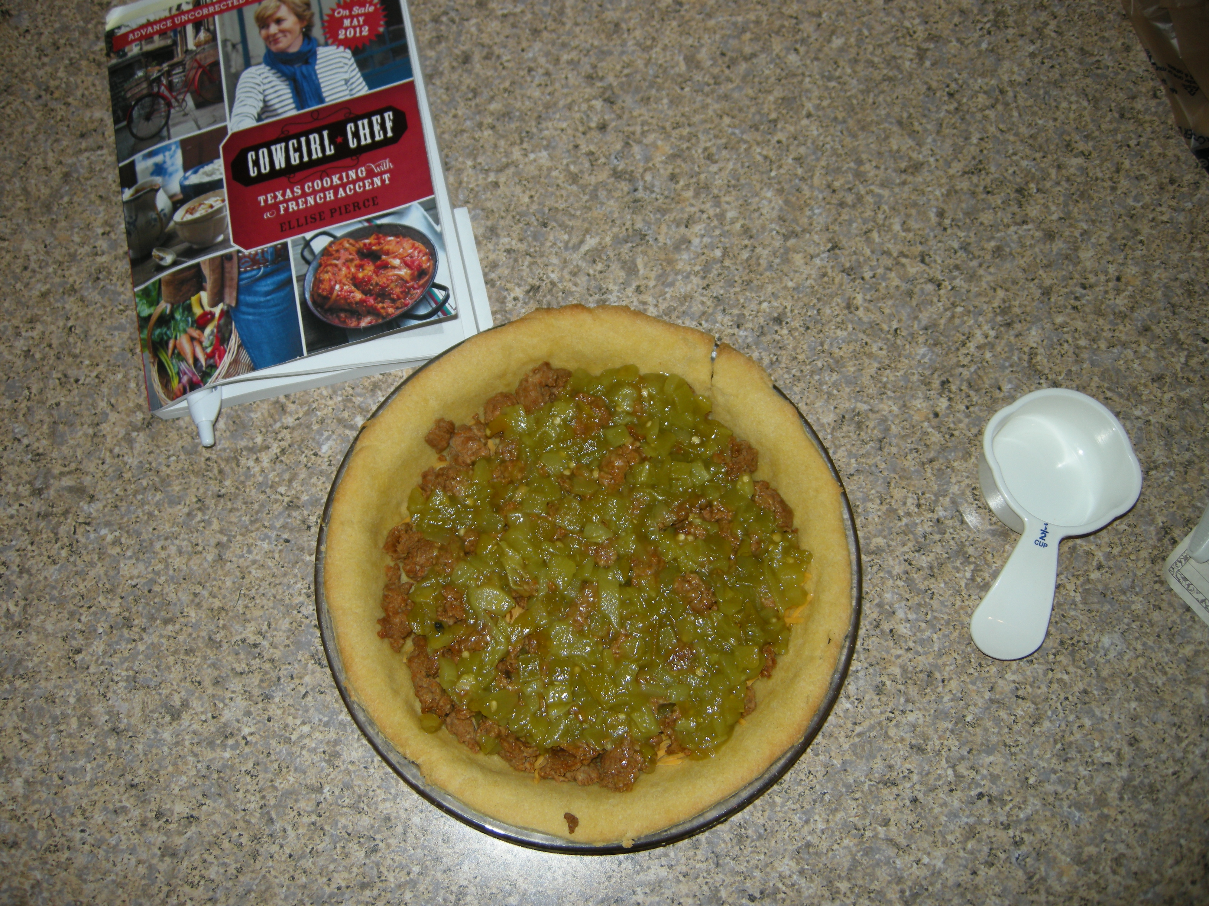 I decided on the cowgirl quiche. We both love Mexican food, especially when it has a little heat. Its homemade chorizo and cornmeal sea salt crust intrigued me. The recipe begins by mixing ground pork with a handful of spices, most important of which is lots of chili powder. I added cayenne to make it hotter! Brown the ground pork.