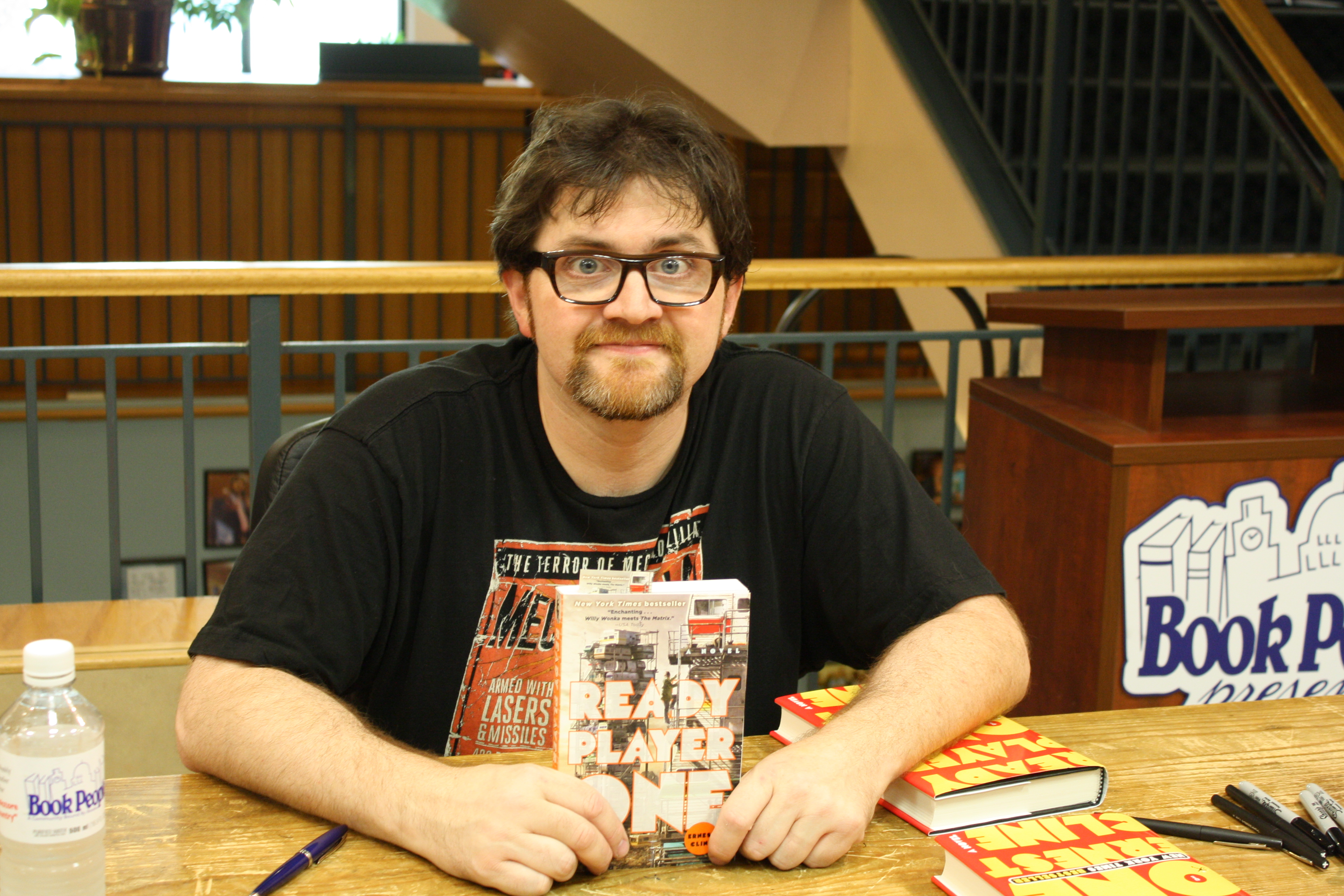 It was awesome to have Ernie Cline in store today signing his brand spanking new paperback edition of Ready Player One (released today!!!). He was kind enough to give some hints about the easter egg hidden in the book and arrived in the prize delorean.