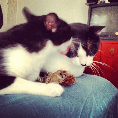 They team up to give you the old “kill ’em with kindness” routine. Sure, it looks like Yoko loves Rebel, but really it’s only a pose to lull me into a false sense of security about how harmless they are. Cute, adorable security.