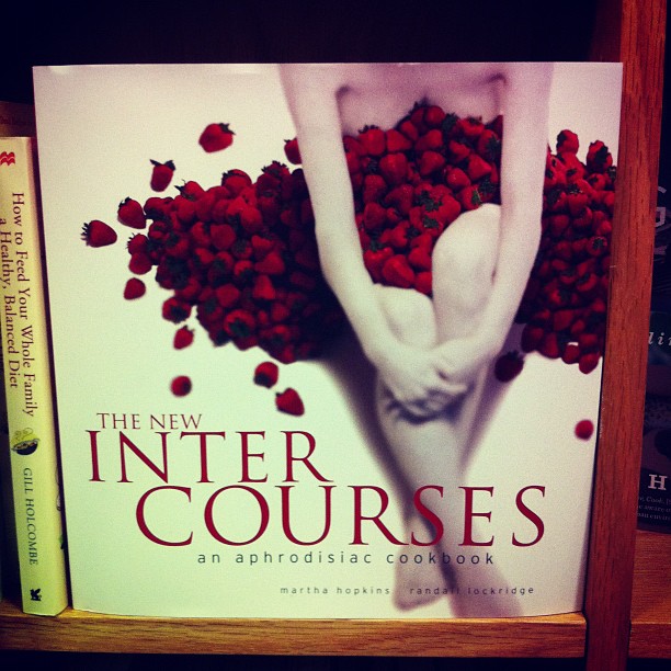 Organized by aphrodisiac, this cookbook covers nineteen sensual foods, from ginger to strawberries to oysters,with some very lovely photography. Of course you don’t just give a cookbook on Valentine’s Day. You cook from it. And surprise me with the meal. By candlelight. Yes.