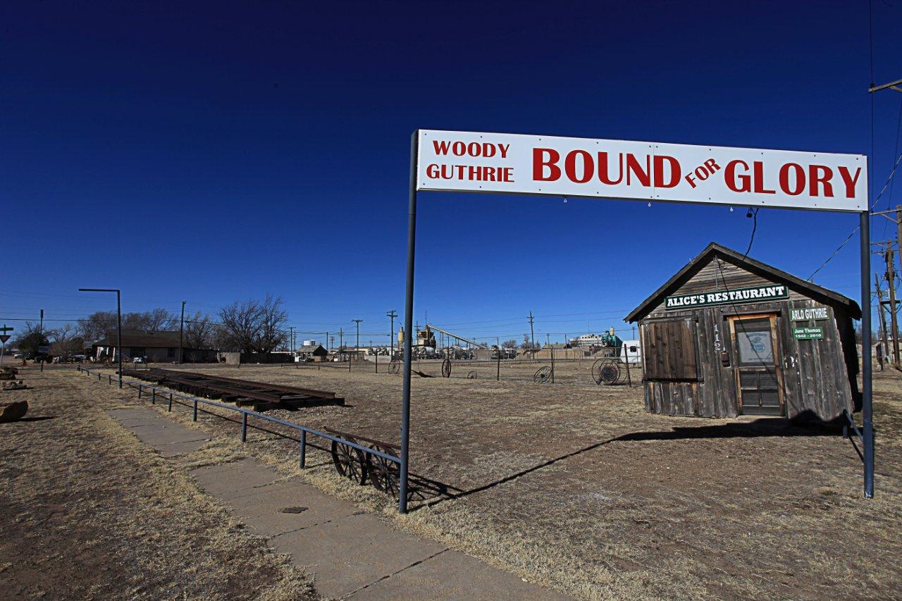 I was born and raised in Pampa, Texas – a town in which Woody Guthrie lived several years during that definitive time of The Dust Bowl, when he was first learning that he had something to say and that he wanted to say it with music. As a child, us elementary school kids would gather in the park on his birthday and sing his songs for a crowd of parents. There’s even a sculpture in Pampa of the first few bars of “This Land is Your Land.” But I’d let all these things fade in my memory until I recently decided to reacquaint myself with Woody.
