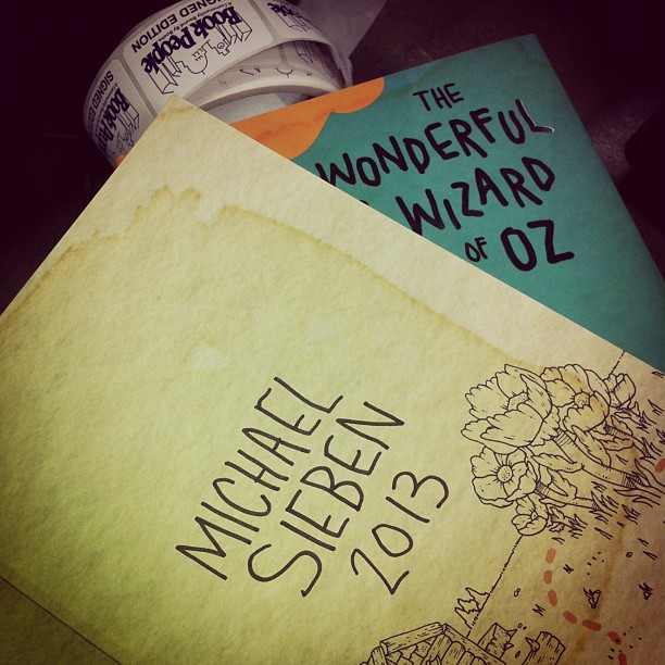 Artist Michael Sieben stopped by today to sign tall stacks of his new illustrated edition of The Wonderful Wizards of Oz. These signed beauties are now available on our shelves and via our website. (Thanks, Michael!)