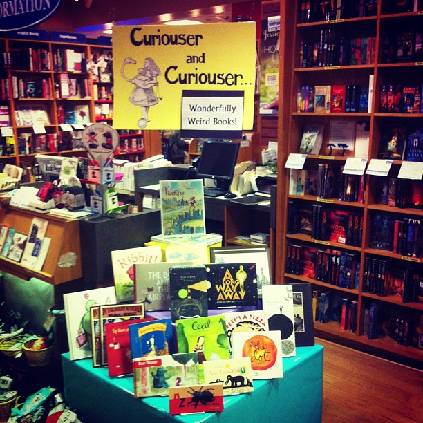 You may know we’re more than a little invested in keeping things weird around here, hence the display you’ll currently encounter on our first floor, across from the staircase. Curiosity goes way beyond Wonderland with these books – a pet glacier, a duck who strikes up a friendship with Death, and of course a dip into classic Sendak surreality. A few of our favorites from the display are listed below. For all the weird you can handle, head upstairs to the kid’s section and visit Keeping Austin Weird, One Book at a Time…. We have a whole section dedicated to keepin’ it weird! Just doing our part to make sure not one iota of Austin is boring, ever.